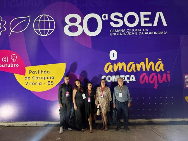 Estiveram presentes o presidente da ABEC-PR, Eng.º Giovane Siqueira, o Conselheiro do CREA-PR, Eng.º Pedro Faggion, a Diretora Administrativa, Eng.ª Amanda Torres, a Diretora Financeira e Inspetora do CREA-PR, Eng.ª Aline Pallu, e a Conselheira Consultiva e Delegada Regional do CREA-PR, Eng.ª Taciana Vannucci, todos participantes da 80ª SOEA.