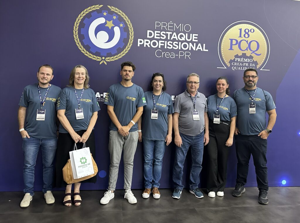 Da esquerda para a direita: Eng.º Alex Bruno Kraemer, Conselheiro Fiscal da ABEC-PR e Inspetor do CREA-PR, Eng.ª Simone Maren Gunther, Vice Presidente da ABEC-PR, Eng.º Giovane Siqueira, Presidente da ABEC-PR, Eng.ª Taciana Vannucci, Conselheira Consultiva ABEC-PR e Delegada Regional do CREA-PR, Eng.º Pedro Faggion, Conselheiro do CREA-PR, Eng.ª Amanda Torres, Diretora Administrativa ABEC-PR, e Eng.º Julio Cesar Oliveira, Conselheiro Consultivo da ABEC-PR e Inspetor do CREA-PR. (Foto: ABEC-PR)