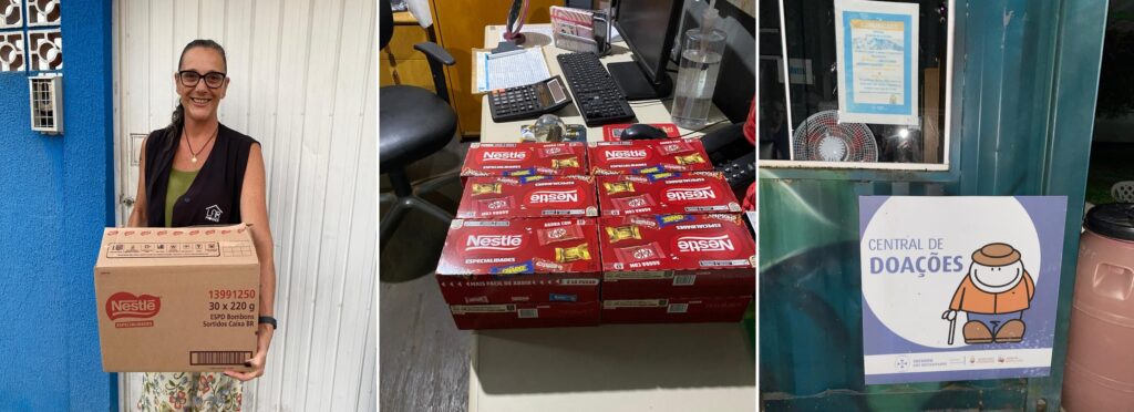 As doações foram destinadas a crianças e idosos do Lar Moisés e Lar dos Idosos Recanto do Tarumã, levando não apenas chocolates, mas também carinho, atenção e a mensagem de que pequenos gestos podem gerar grandes impactos.
